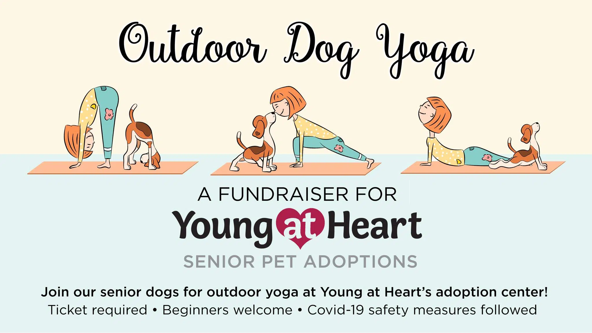 Enjoy a yoga class in Peaches’ Meadow with the beauty of nature and the senior dogs of Young at Heart in Woodstock IL. This exclusive one-hour yoga class in the beautiful natural play area at Young at Heart is followed by a 30-minute social with the senior dogs. Experience relaxing, gentle movements combined with breathing and posture exercises. No yoga experience is needed! Bring water and a mat or a towel. A ticket is required. If the class is canceled due to inclement weather, it will be made up on Saturday, June 22, 2024, at 11:00 am.