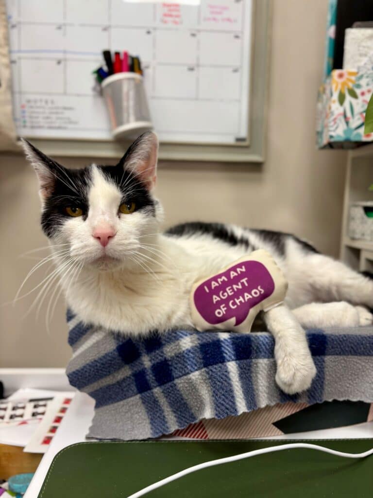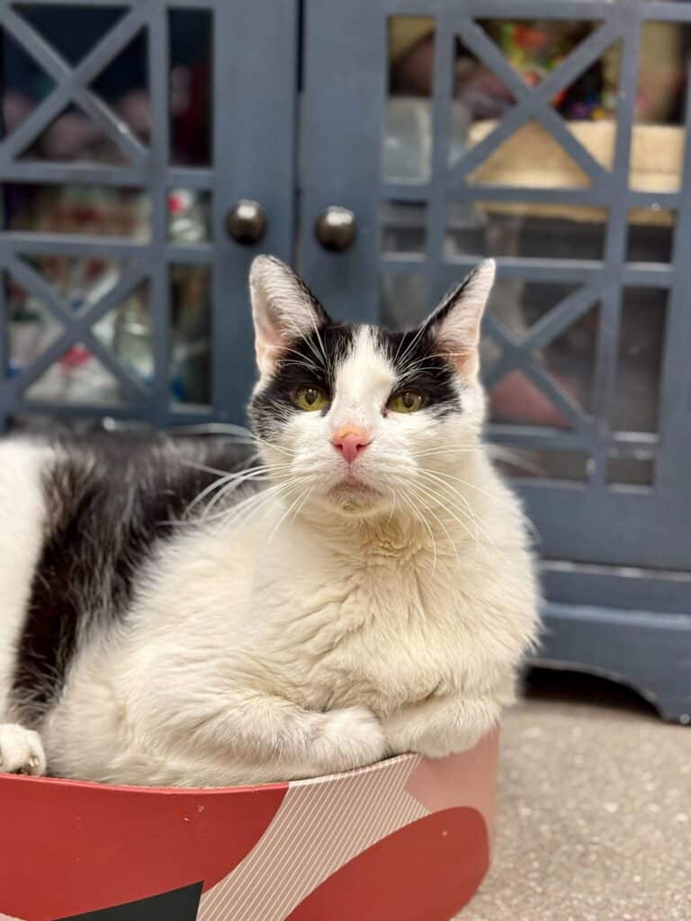 Hi, I’m Double Stuft Oreo! I’m 11-years-young and never shy about speaking my mind. If my food bowl is empty or I need more chin scratches, you’ll hear about it loud and clear. I love my daily brushing sessions, batting around catnip toys, and digging into my snuffle mat to find every last piece of my prescription kibble. Life’s more fun when you add a little drama, and I bring it wherever I go.
