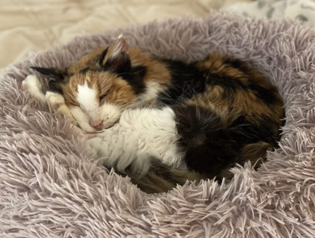 Hi, I’m Violet – a senior calico cat who finally gets to enjoy the golden years I deserve. When Young at Heart rescued me in June 2025, I was weak, underweight, and fighting off infections. My jaw still shows the cruelty of my past, but I no longer live in fear.